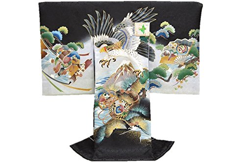 - 黒にグレーのぼかし地が綺麗なお着物です。メインの鷹柄は、立体感のある刺繍を使用しており、たいへん豪華です。全体に描かれた絵柄も、とても上品で綺麗です。地紋の入った高級感のあるしっかりした絹生地を使用しております。豪華な刺繍と上品な絵柄のお宮参り着物【初着 産着】になります。