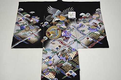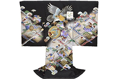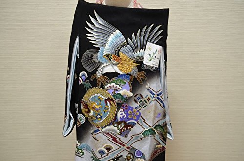 - 黒地に、モダンな格子柄のお着物です。綺麗な刺繍の鷹と龍がメインの柄になります。品のある色使いで、たいへん高級感があります。地紋の入った上質な絹生地を使用しております。豪華な刺繍柄のモダンなお宮参り着物【初着 産着】になります。