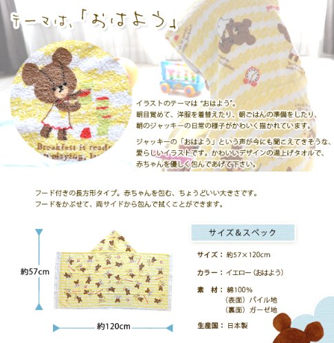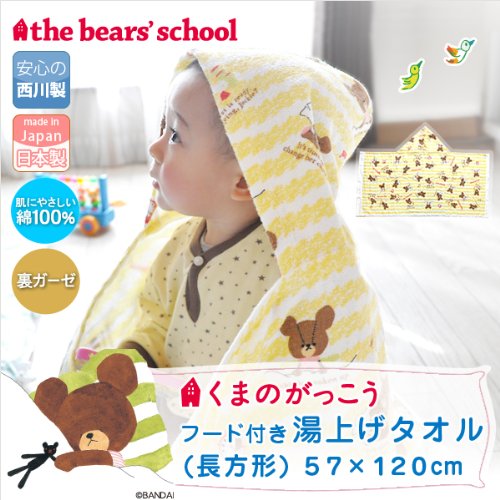くまのがっこう 日本製 綿100% フード付き 湯上げタオル 長方形 約57×120cm