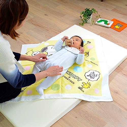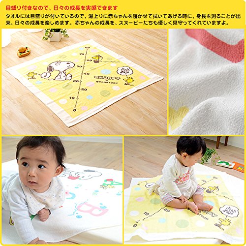 西川リビング スヌーピー なめらか裏ガーゼ 湯上げタオル 80×80cm 日本製 (ソフト(クリーム)) [Baby Product]
