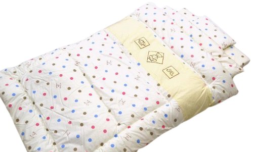 - [本体サイズ] ◆1.掛けふとん/サイズ:100×130cm ◆2.肌ふとん/サイズ:80×112cm ◆3.敷きふとん(固綿使用)/サイズ:70×120cm×高さ5cm •◆4.枕/サイズ:27×37cm、外側:綿100%、詰め物:ポリエステル100% ◆5.固綿敷き布団用シーツ/サイズ:70×120cm、綿100% ◆6.掛け布団カバー/サイズ:105×135cm、綿100% • 日々のお手入れはカバーをまめに替える、部分的なつまみ洗いをするなどして下さい