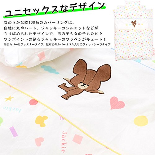 なめらかな綿100%のカバーリングは、白地に丸やハート、