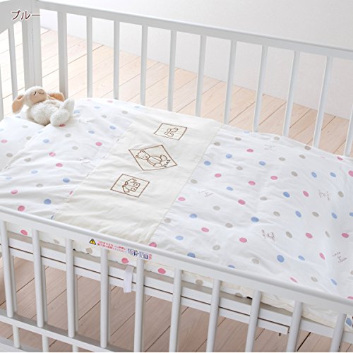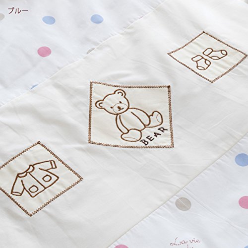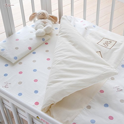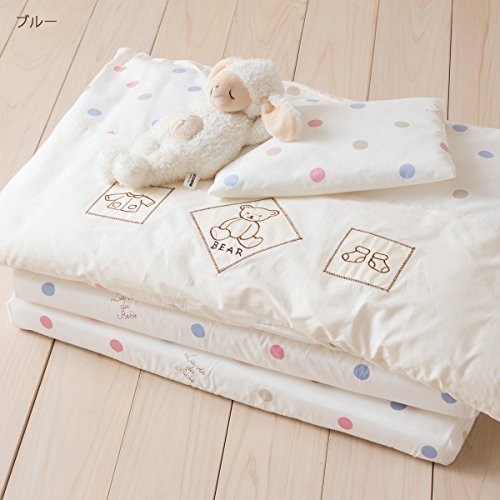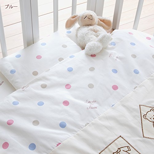 西川リビング ベビーミニ6点セット くま水玉 日本製 ブルー[アイボリー地]