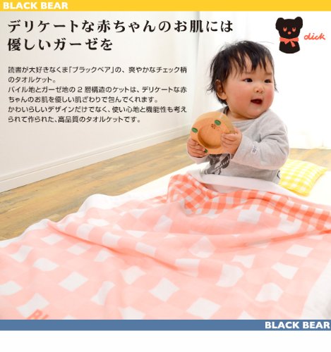 - 読書が大好きなくま「ブラックベア」の、爽やかなチェック柄のタオルケット。 パイル地とガーゼ地の2層構造のケットは、デリケートな赤ちゃんのお肌を優しい肌ざわりで包んでくれます。 かわいらしいデザインだけでなく、使い心地と機能性も考えられて作られた、高品質のタオルケットです。