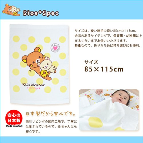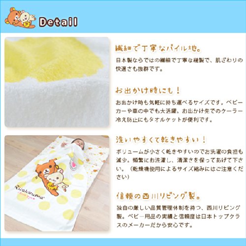 西川リビング リラックマ ベビータオルケット 綿100% 85×115cm 日本製 [Baby Product]