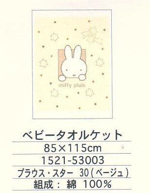 西川リビング ブルーナ ミッフィー ベビーサイズ タオルケット ベージュ 日本製