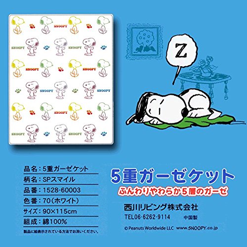 西川リビング スヌーピー 5重ガーゼケット 90×115cm SPスマイル ベビー用 子供用 1528-60003