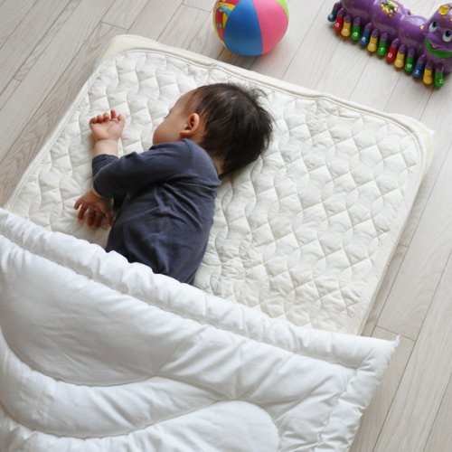 - 寝汗をたくさんかき、時にはおねしょもする赤ちゃん。 シーツだけではどうしても敷き布団が汚れてしまう。。 そんな時にキルトパッド&防水シーツがあれば安心です。なかなか洗えない敷き布団を汚れから守り、清潔に保ってくれます。