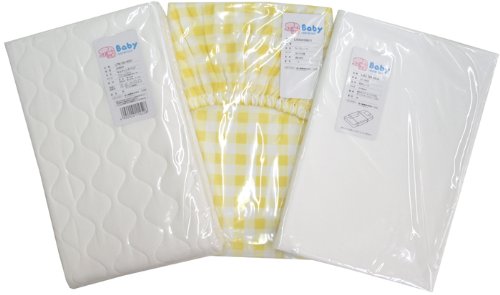 - 8)防水シーツ(70×120cm)・・1枚 表:綿80%ポリエステル20% 裏:ポリウレタンラミネート 9)キルティングパッド(70×120cm)・・1枚 側:綿100% 中綿:綿100%(脱脂綿)