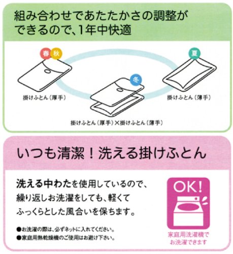 厚手掛け布団・薄手掛け布団・掛けカバー・固綿敷き布団・防水シーツ キルティングパッド・ラップシーツの、すぐに使える便利な7点セット!! 『うつぶせ寝育児についてのご注意』 1.誤った使用方法による事故を防ぐため、必ず医師の 指導をお受けください。 2.枕は、絶対に使わないでください。 3.シーツは、たるみにくいラップシーツを使ってくだ さい。 4.顔のまわりや手の届くところに鼻や口をふさぐよう なものを置かないでください。 5.別のふとんを重ねないでください。
