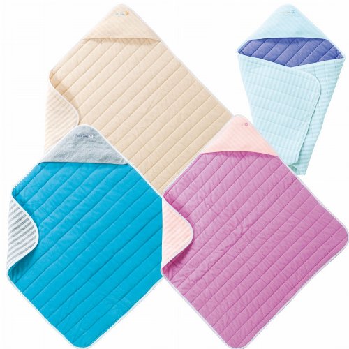 通常の糸よりも空気をたっぷり含んだ特殊な糸で編み上げたニット。ふんわり感が違い、空気層が吸水性と軽量化をもたせ薄手なのに暖かなのが特徴な生地でできたおくるみ。フワフワのおくるみは包まれる赤ちゃんも包んでだっこするママもとっても気持ちがいい触感。フード部分がニットきじなっているので、生地のよさを感じてもらえます。