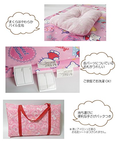 西川お昼寝布団セット【6点セット・カバーリング式】保育園、幼稚園の必需品のお昼寝ふとん、持ち運び便利な手提げ袋付。ハローキティは女の子に人気のキャラクター。カバーリングタイプでカバーは取り外して洗えます。メーカーは西川産業。入園準備に、入園のお祝いやお誕生日のお祝いのギフトにも喜ばれています。