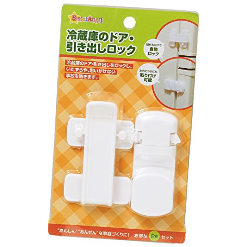 冷蔵庫のドア・引き出しをロックし、いたずらや思いがけない事故を防ぎます。|【入数】2個|【材質】ABS|【サイズ(cm)】ドアロック:約 縦5.5×横8.5×奥行1.2cm|引き出しロック:約 縦4.5×横8.6×奥行1.1cm|*表示サイズは実物と多少差が出る場合がございます。|左右どちらの引き出しにも取り付け可能!|大人はワンタッチでロックが解除でき、赤ちゃんには開けにくい構造!|中国製