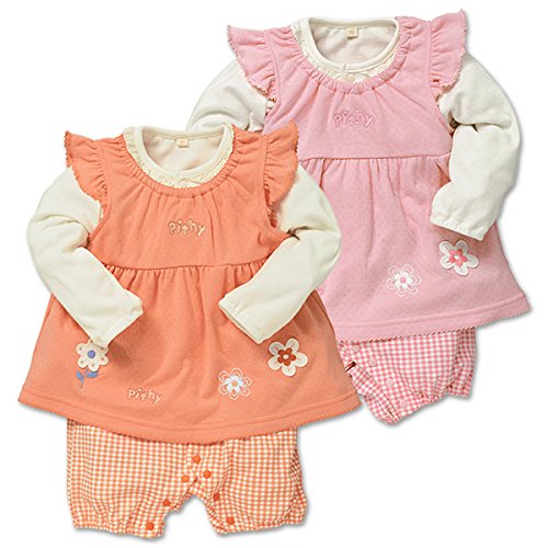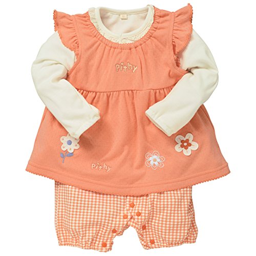 西松屋 [EFD] 格子切替花ジャンパースカート付きカバーオール 【70cm・80cm】 70 オレンジ