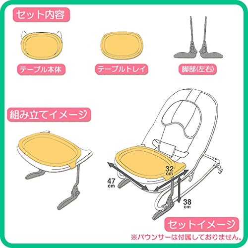 ※本バウンサーテーブルは、西松屋オリジナルSmartAngelシリーズのバウンサーのみ適合する商品です。また、画像に使用しているバウンサーは付属しておりませんのでご注意ください!|西松屋オリジナルSmartAngelシリーズのバウンサーに装着する『バウンサーテーブル』が登場!!|【対象年齢】0ヶ月~18ヶ月|【セット内容】テーブル本体、テーブルトレイ、脚部(左右)|【サイズ(cm)】約 W47×D32×H38cm|【本体重量】1.7kg|【耐荷重】10kg|【素材】テーブル本体:PP|トレイ:PA|脚:鉄、ABS、CRフォーム|お食事後のお片づけに便利なテーブルトレイ付き♪|脚が接地しているから、テーブルはしっかり安定!|中国製