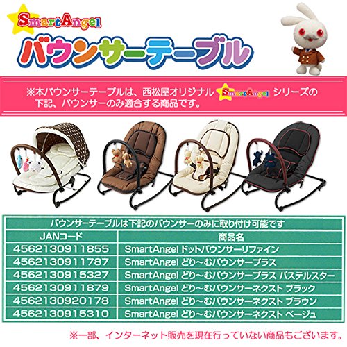 - ※本バウンサーテーブルは、西松屋オリジナルSmartAngelシリーズのバウンサーのみ適合する商品です。また、画像に使用しているバウンサーは付属しておりませんのでご注意ください!