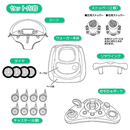 【対象月齢】7ヶ月~15ヶ月|【適応体重】12kgまで|【セット内容】【サイズ(cm)】約 W62.5×D71×H55cm|【折りたたみ時高さ】約 34.5cm|【重量】4.6kg|【オススメポイント】気分はレーサー!楽しいメロディとライトが光る「おもちゃボード」付き|お子さまをしっかりガードする「安全ベルト」付き|本体の動きを制止できる「ストッパー」付き|成長に合わせて高さを変えられる「5段階の高さ調整可能」付き!|※単3アルカリ電池:2本使用(別売り)|中国製