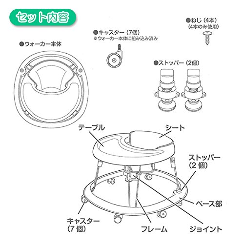 【対象月齢】7ヶ月~15ヶ月|【適応体重】12kgまで|【サイズ】約 61.5×65×40cm(折りたたみ時高さ:約 12cm)|【重量】2.7kg|【材質】本体:スチール・PP・PC・TPR|シート:ポリエステル・PP・PUR|【オススメポイント】本体の動きを制止できるストッパー|組み立てや折り畳みがしやすいカンタン構造!|赤ちゃんのおしりにやさしい、ふんわりソフトシート♪|フローリングでも静かな消音キャスター採用|中国製