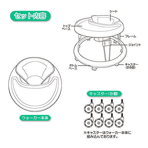 お子様のよちよちあんよをしっかりサポート|【対象月齢】7ヶ月~15ヶ月|【適応体重】12kgまで|【サイズ】約W65×D65×H40cm|(折りたたみ時の高さ:11cm)|【重量】2.6kg|【素材】本体:スチール・PP・PC・TPR|シート:ポリエステル・PP・PUR|ふんわりソフトシート|コンパクトに収納(折りたたみ高さ約11cm)。|フローリングでも静かな消音キャスター付き。|※シートはウォーカー本体から外さずにお手入れして頂くことを推奨いたします。|中国製