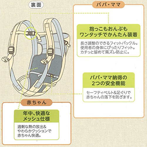 【素材】デニム:綿80% ポリエステル20%|メッシュ部:ポリエステル100%|【使用スタイル/対象月齢】ヨコ抱っこ:新生児(生後10日頃)-首が座る(4ヶ月頃)まで|対面抱っこ:首が座る(4ヶ月頃)-24ヶ月(体重13kg)まで|※お子様の発育により同じ年齢でも体格や体重は個人差があります。|※使用者の対応ウエストサイズ58~110cm(体型によって装着できない場合があります)|抱っこひもを始めて使うパパ・ママに♪|ワンタッチでカンタン着脱!抱っこやおんぶも安心なセーフティベルト付き抱っこひも☆|メッシュ仕様で年中快適!|新生児の横抱っこから安心につかえる“ヘッドボード”つき|フィットバックルのワンタッチでカンタン装着|セーフティベルト&足ぐりでお子様の落下を防ぎます|中国製|[4903477285672]|*製品につきましての詳細お問い合わせ先|【ラッキー工業】電話 0585-45-7425