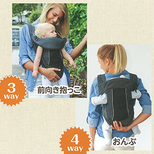 西松屋 ワンタッチ4way抱っこひも(デニムブラック)【ヨコ抱っこ・対面抱っこ・前向き抱っこ・おんぶ】