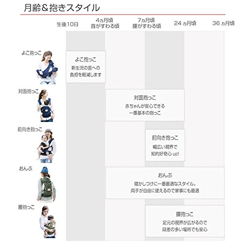 - 【使用スタイル/対象月齢】ヨコ抱っこ:生後10日(かつ3.2kg以上)~首がすわる頃(4ヶ月頃)まで