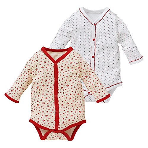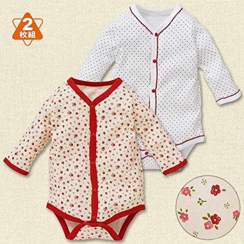 西松屋 [EFD] カリフォルニア綿 2枚組長袖前開きロンパース肌着(花・ドット) 【60cm・70cm・80cm】 60