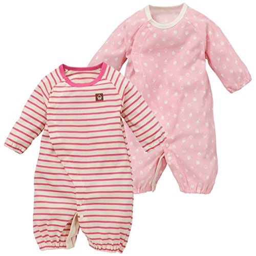西松屋 EFD 2枚組長袖コンビドレス(ボーダー・おうち柄)【新生児50-60cm】 新生児 ピンク