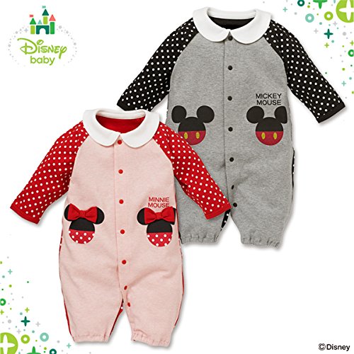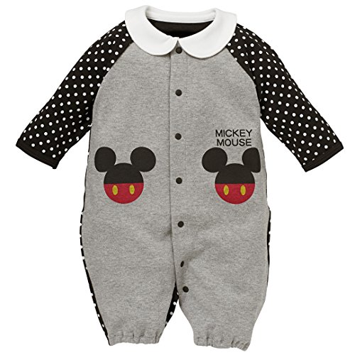 西松屋 ディズニー 長袖襟付きコンビドレス(ポケット風プリント ミッキー/ミニー)【新生児50-60cm】 新生児 ブラック
