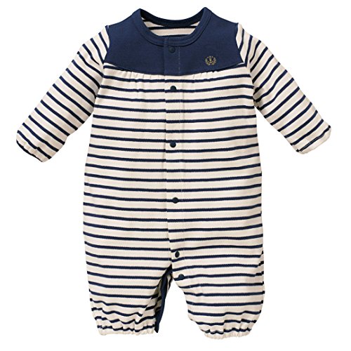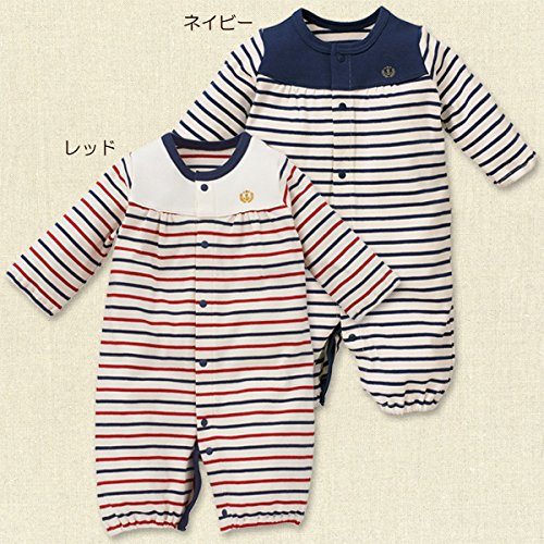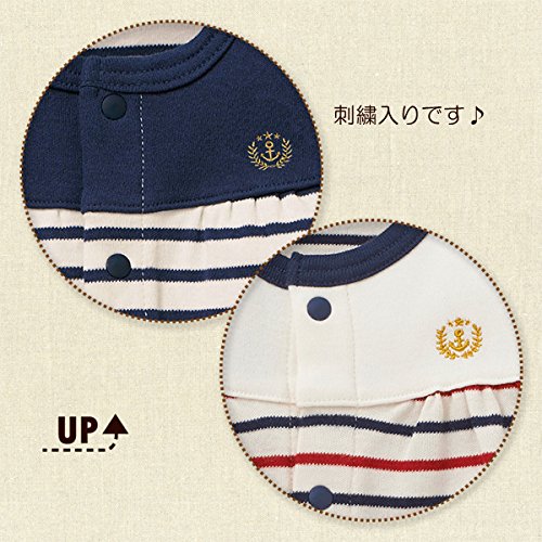 西松屋 EFD 胸切替ボーダー長袖コンビドレス(イカリ刺繍)【新生児50-60cm】 新生児 ネイビー