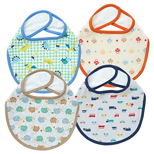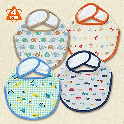西松屋 EFD 4枚組スタイ(ハリネズミ・恐竜・車・きのこ柄) ベビー ベビーサイズ 男の子