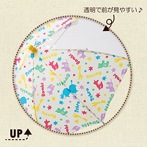 【親骨の長さ】35cm|【対応身長】85-95cm|【生地の組成】ポリエステル100%(透明部分:ポリエチレン)|丈夫でさびにくいグラスファイバー骨使用。|指をはさみにくい安全手開き。|透明で前が見やすい。|中国製