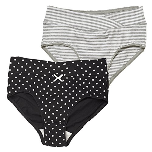 西松屋 EDM 2枚組ローライズショーツ(ドット・ボーダー)【M-L・L-LL】 マタニティ M-L グレー&ブラック