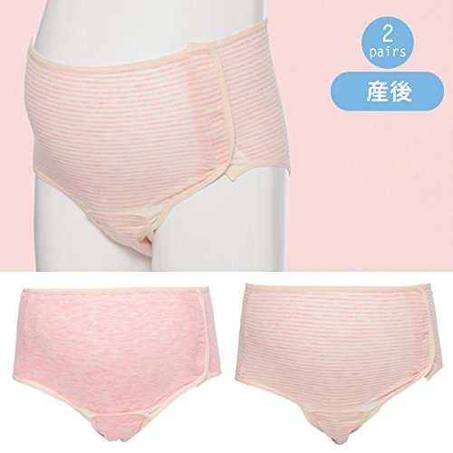 西松屋 [EDM] 2枚組脇オープン産褥ショーツ(杢・ボーダー) 【M-L・L-LL】 M-L