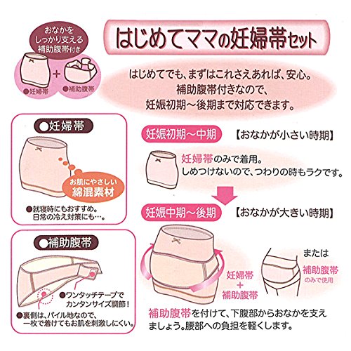 - 【妊娠初期-中期(お腹が小さい時期)】妊婦帯のみで着用。しめつけないので、つわりのときもラクです。