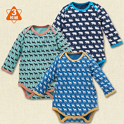 西松屋 EFD 3枚組長袖ショルダーロンパース肌着(アニマルシルエット)【70cm・80cm・90cm】 新生児 90
