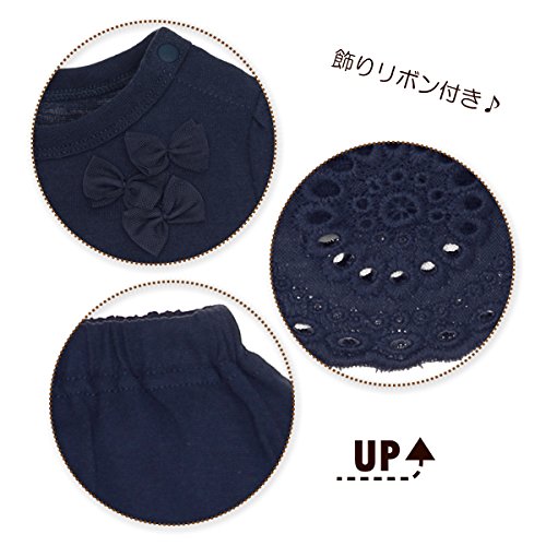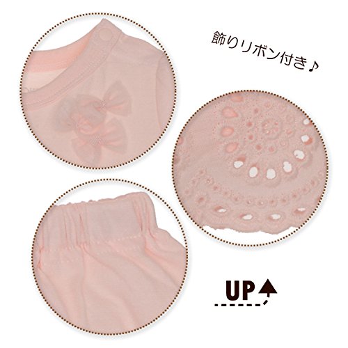 【トップス(cm)身丈/胸巾/袖丈】60-70 : 33.5 / 26 / 6.5|【ブルマ(cm)股上/ウエストゴム上り】60-70 : 23 / 37|表示サイズは実物と多少差が出る場合があります|【素材】Tシャツ)|本体:綿100%|リブ部分:綿95%・ポリウレタン5%|リボン部分:ナイロン100%|ブルマ)|綿100%|肩スナップあり|飾りリボン付き☆|ウエスト総ゴム・ゴム穴あり|中国製