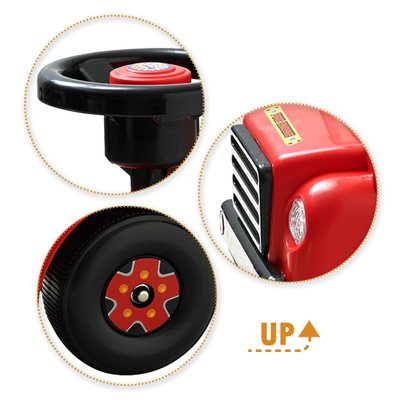 ● 対象年齢 1.5歳~ ● 適応体重 20kg ● サイズ(cm) W23.5×H45.5×D49.5cm ● 本体重量 2.5kg ● 材質 ポリプロピレン・PS・ABS ● ハンドルと一緒に動くクマさん運転手。 ● クラクションと5つのメロディー機能。 ● ハンドルロック機能。 ● 単3電池2本使用(別売)