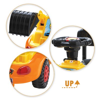 ● 対象年齢 1.5歳~ ● サイズ(cm) 約 W26×H41.5×D64cm ● 適応体重 20kgまで ● 素材 ポリプロピレン・ABS ● メロディー音、LEDフラッシュ付き多機能ハンドル。 ● ショベルアームなど手遊びがいっぱい!! ● 単3電池2本使用(別売)