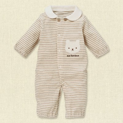 ● サイズ 50~60cm(新生児~3か月) ● 素材 パイル(綿100%) (※ボーダー濃色部分は普通糸コットン100%を使用しています。) ● 赤ちゃんの発育に合わせて2通りに着せられます