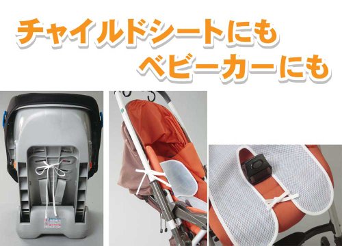 人気のクールでドライシリーズのチャイルドシート用です。東レの「クールモーションR」を使用したこのシートは汗や水分を吸って素早く発散すると共に、独自の加工によりお肌からの熱の移動量が多いので優れた接触冷感を実現。生地の中に水分をため込まないので、重く肌にくっついたりベタベタした感じがなく、常にサラッとしたドライな感触でいつも快適。さらに中地のポリプロピレンの層は厚みをもたせたネット状に編み上げて、通気性を良くしてあります。ヒモで固定できるので、ズレにくく、取り付けも簡単!国産メーカーのほとんどのベビーカー・チャイルドシートに取り付けOK!(ヒモを通すスペースの有無をご確認下さい。)■(約)上部巾/40cm、下部巾/24cm、長さ/70cm、ヒモ/上部4本52cm、下部2本18cm、75g、ポリエステル100%(クールモーション素材使用)、日本製※取り付けに関して:一部のベビーカー・チャイルドシートを除く。(ヒモを通すスペースの有無をご確認下さい。) ※クールモーションは東レの商標です。※メール便は郵便受けに投函されます。商品未着・紛失等の保障対象外です。