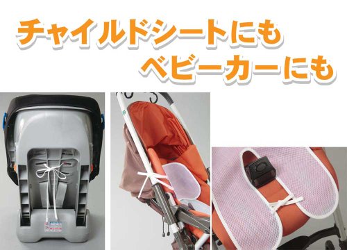 人気のクールでドライシリーズのチャイルドシート用です。東レの「クールモーションR」を使用したこのシートは汗や水分を吸って素早く発散すると共に、独自の加工によりお肌からの熱の移動量が多いので優れた接触冷感を実現。生地の中に水分をため込まないので、重く肌にくっついたりベタベタした感じがなく、常にサラッとしたドライな感触でいつも快適。さらに中地のポリプロピレンの層は厚みをもたせたネット状に編み上げて、通気性を良くしてあります。ヒモで固定できるので、ズレにくく、取り付けも簡単!国産メーカーのほとんどのベビーカー・チャイルドシートに取り付けOK!(ヒモを通すスペースの有無をご確認下さい。)■(約)上部巾/40cm、下部巾/24cm、長さ/70cm、ヒモ/上部4本52cm、下部2本18cm、75g、ポリエステル100%(クールモーション素材使用)、日本製※取り付けに関して:一部のベビーカー・チャイルドシートを除く。(ヒモを通すスペースの有無をご確認下さい。) ※クールモーションは東レの商標です。※メール便は郵便受けに投函されます。商品未着・紛失等の保障対象外です。