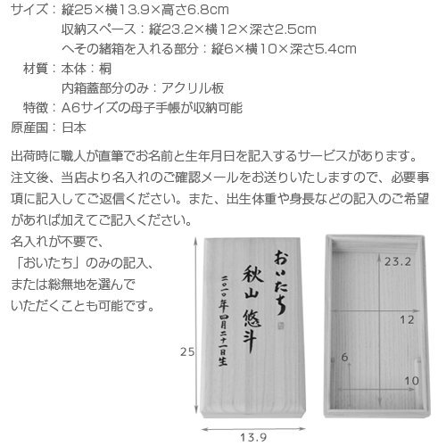 名入れ おいたちの小箱 A6版 内箱ロング:エチュード