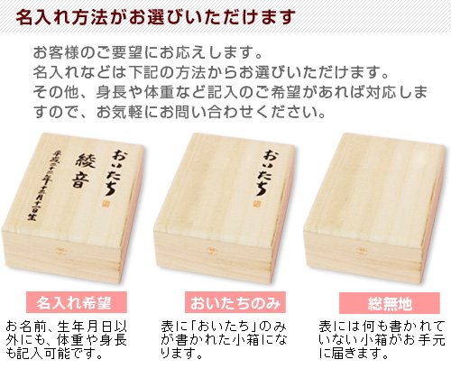 - 名入れ、出生日、体重や身長の記入が可能です