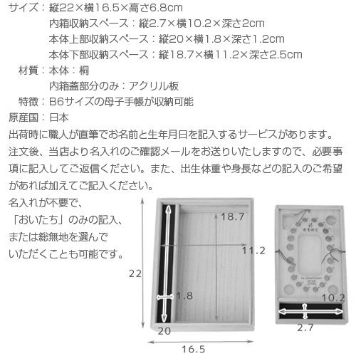 - B6サイズ(約18×12.5cm)の母子手帳が収納できます