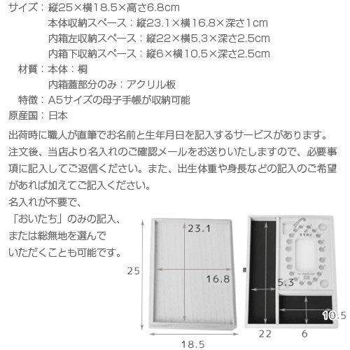 - A5サイズ(約21×14.8cm)の母子手帳が収納できます