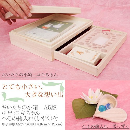名入れ おいたちの小箱 A5版 引出:ユキちゃん へその緒ケース 雫付き