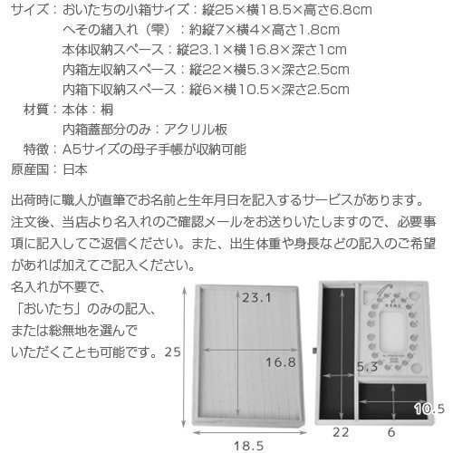 おいたちの小箱サイズ:縦25×横18.5×高さ6.8cm