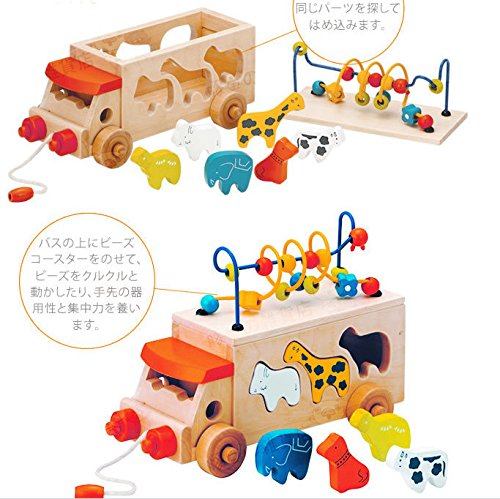 森のあそび道具シリーズ アニマルビーズバス Animal Beads Bus 15穴の知力おもちゃ