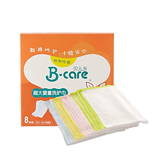 ベビー用 ガーゼハンカチ 多用途 沐浴布 貝児楽 タオル 布おむつ コットン 綿 赤ちゃん 新生児 乳児 幼児 通気性 やわらか 高吸収 無地 50cmx68cm(8枚入)